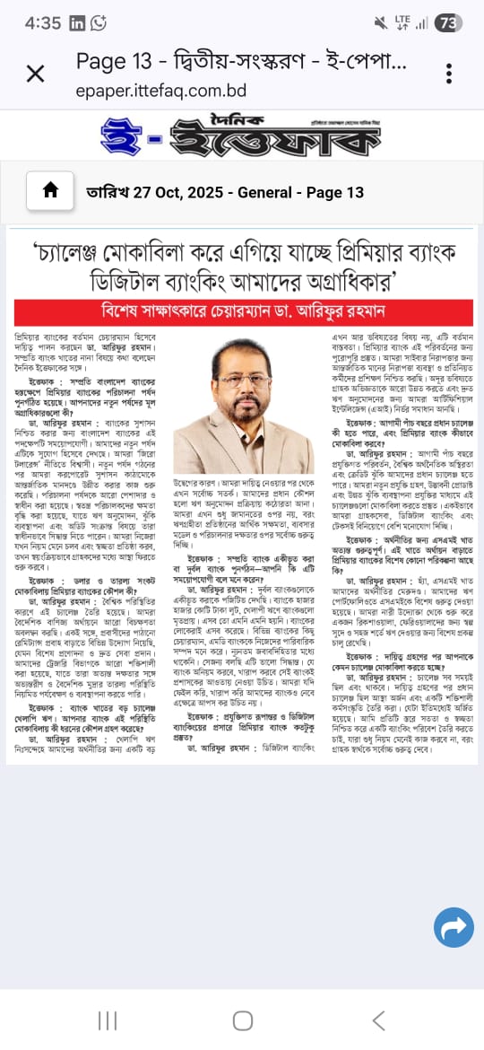 সুত্র: ইত্তেফাকপ্রিমিয়ার_ব্যাংকসেবাই_প্রথম