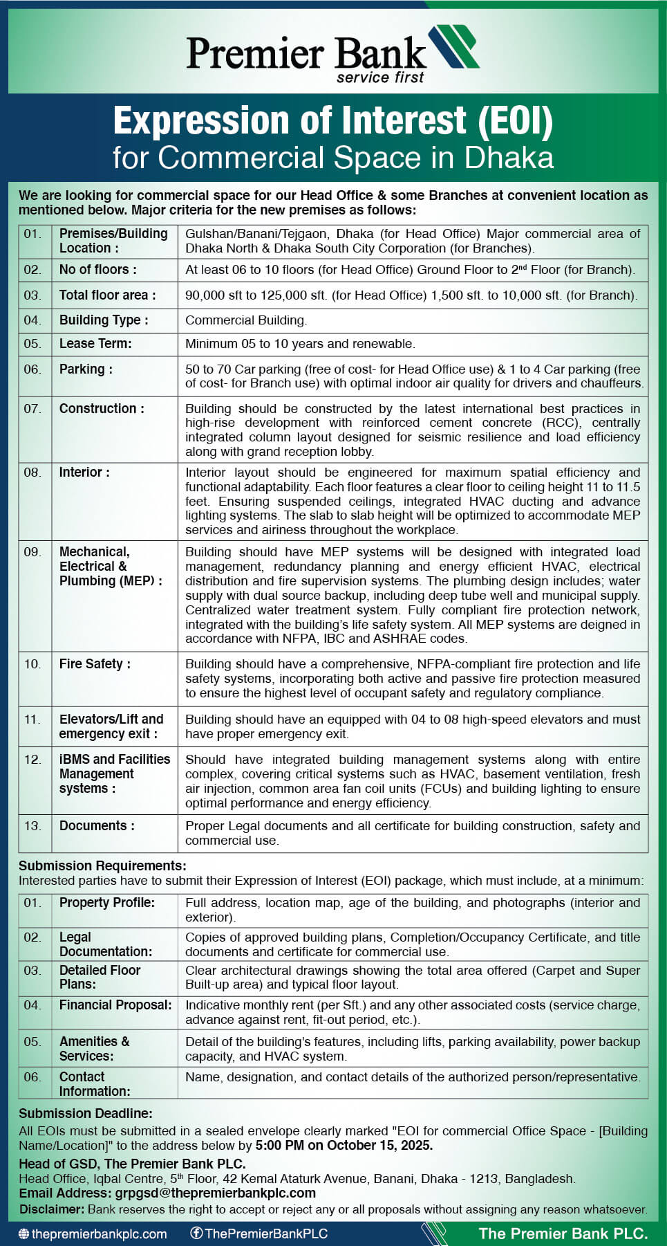 Click to download the Expression of Interest(EOI) for Commercial Space in Dhaka